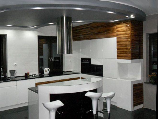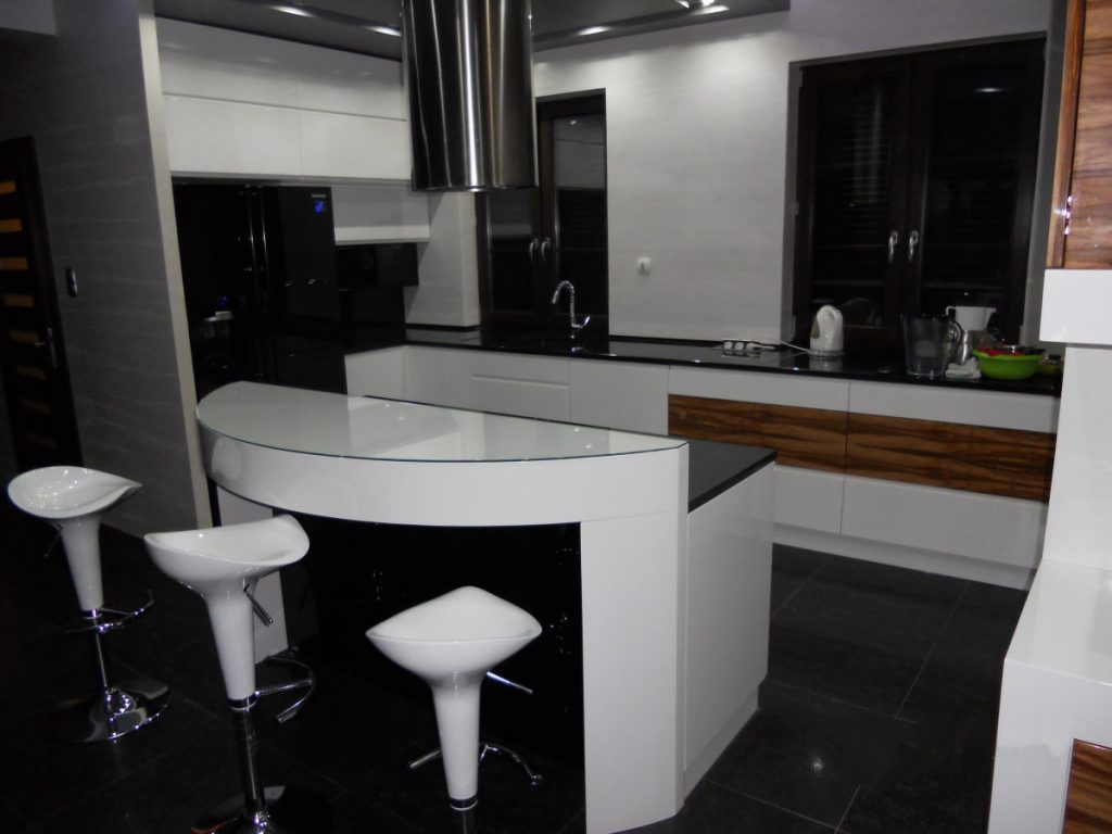Kuchnia biały lakier z dodatkami forniru modyfikowanego